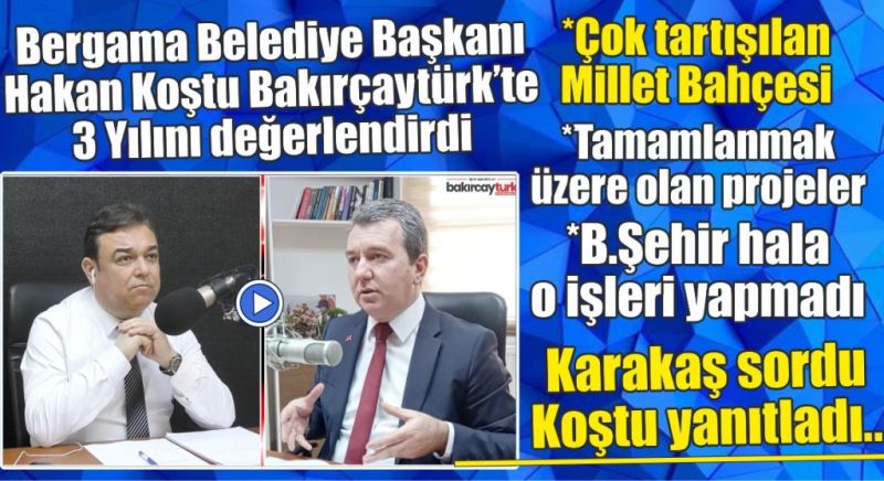 Bergama Belediye Başkanı Hakan Koştu www.bakircayturk.com 'da Murat Karakaş'ın canlı yayın konuğu olarak geride bıraktığı görev süresi olan 3 yılı değerlendirdi.