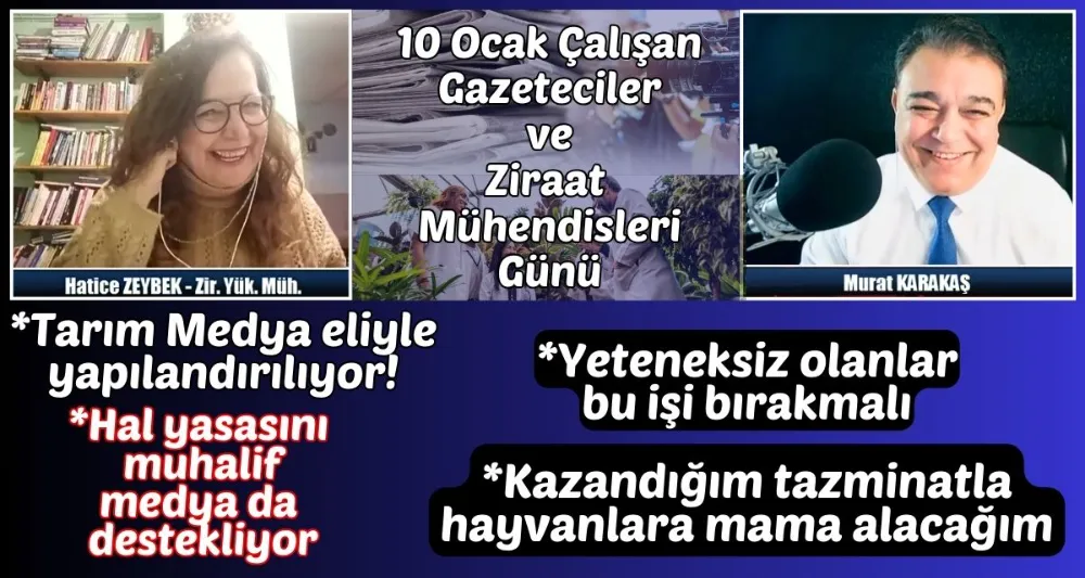 10 Ocak Çalışan Gazeteciler Günü aynı zamanda da Ziraat Mühendisleri günü... Ziraat Yüksek Mühendisi Hatice Zeybek ile Bergamalı gazeteci Murat Karakaş www.bakircayturk.com'da renkli bir sohbet içeren yayın yaptılar. Videoda izleyebilirsiniz.