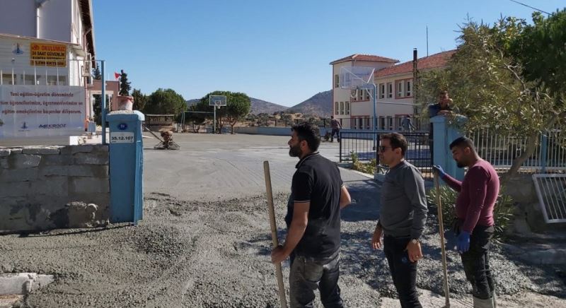 Bozulan zemin sebebiyle çocukların oyun alanları kalmamıştır Küçük kızlar Türkiye voleybol şampiyonası'nda 5. olmuş sporcuların antrenman yapabilmeleri için bahçede düzgün zemin olmaması nedeni ile öğrencilerin oyun ve antrenman alanları yoktur Bütün bu sorunlar Dikili ilçe kaymakamı sayın Ali edip budan, Belediye Başkanı Adil kırgöz, İlçe milli eğitim müdürü Nuri kiraz ve okul velimiz Özkan Akar işbirliği ile 22 23 Ekim 2022 tarihinde Okulumuzun bahçesine beton dökülmesi ile birlikte çözüme kavuşmuş tür.