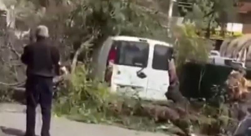 İzmir'de şiddetli fırtına hayatı olumsuz etkilerken, kentin bazı bölgelerinde çatılar uçtu, ağaçlar devrildi.