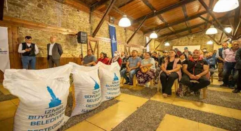 Köylüye kuzu büyütme yemi dağıtan Soyer, küçük üreticiyi destekleyerek kuraklık ve yoksullukla mücadele ettiklerini, böylece kentlinin de sağlıklı gıdaya kavuştuğunu söyledi.