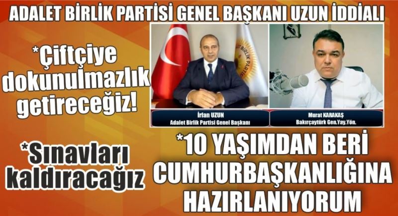 Adalet Birlik Partisi Genel Başkanı İrfan Uzun www.bakircayturk.com 'da Murat Karakaş'ın zoom üzerinden konuğu olarak soruları yanıtladı.