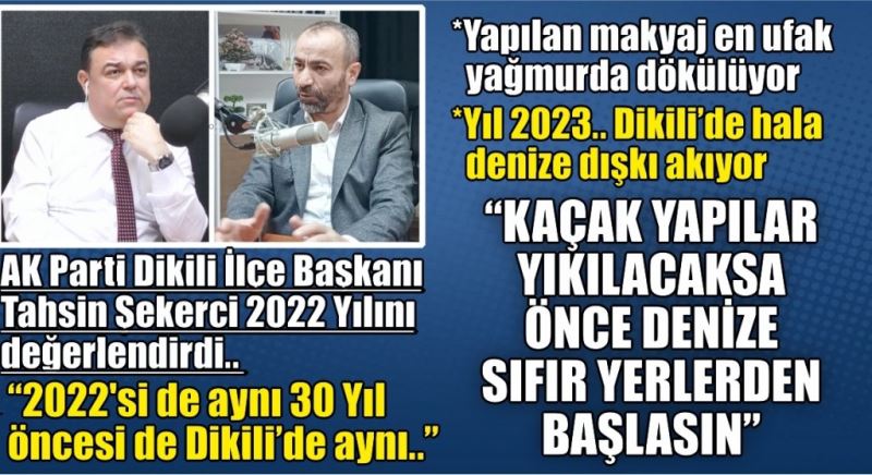 AK Parti Dikili İlçe Başkanı Tahsin Şekerci www.bakircayturk.com'da Murat Karakaş'ın yayın konuğu olarak soruları yanıtladı ve Dikili Belediyesinin 2022 Yılı icraatlarını değerlendirdi.