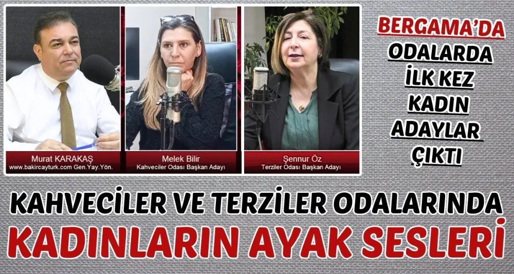 2026 Yılının ilk aylarında meslek odalarının seçimli kongreleri gerçekleşecek. Bu bağlamda Bergama Kahveciler Esnaf Odası Başkan Adayı Melek Bilir ile Bergama Terziler Odası Başkan Adayı Şennur Öz www.bakircayturk.com'da Murat Karakaş'ın yayın konuğu olarak seçildikleri taktirde yapacaklarını anlattılar. Bergama tarihinde ilk kez iki kadın oda başkan adayının seçime katılacağı kongrelerde aday olan Melek Bilir ve Şennur Öz'ün kendilerine güvenleri tam. Bilir halihazırda 15 yıldır odanın genel sekreteri olduğu için tüm işleyişe hakim. Öz ise odaya büyük yenilikler getireceğini ve oda üyelerinin birçok avantaja sahip olacağını söylüyor.
