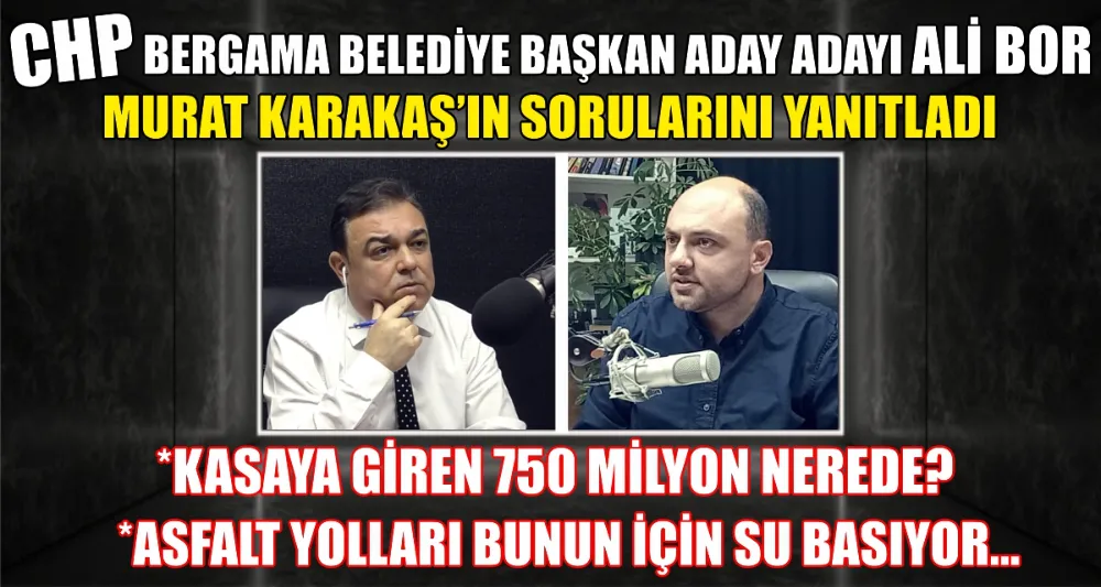 CHP Bergama Belediye Başkan Aday Adayı Ali Bor www.bakircayturk.com'da Murat Karakaş'ın canlı yayın konuğu oldu. Bor, belediye başkanlığına neden aday olduğunu ve aday olup seçildiği taktirde yapacaklarından bazılarını anlattı. Beş yıldır belediye meclis üyeliği görevini de sürdüren Bor, Bergama'da belediye yönetimince yapılan birçok icraatı da eleştirdi.
