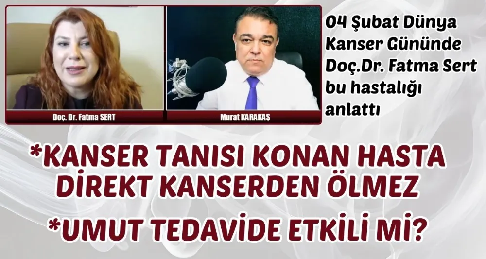 04 Şubat Dünya Kanser Günü.. Bugün dolayıslyla Ege Üniversitesi Kanserle Savaş Araştırma Uygulama Merkezi Müdürü Doç.Dr. Fatma Sert www.bakircayturk.com'da Murat Karakaş'ın yayın konuğu olarak hastalıkla ilgili bilgiler verdi. Yayını videoda izleyebilirsiniz.