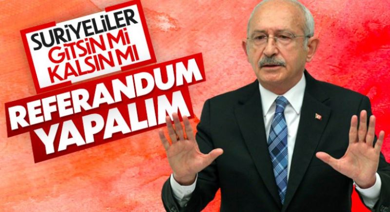 Cumhurbaşkanı Erdoğan'ın, 'Sığınmacıları ülkelerine göndermeyeceğiz' sözleri üzerine konuşan Kemal Kılıçdaroğlu, konuyla ilgili 'referanduma gidelim' teklifinde bulundu.