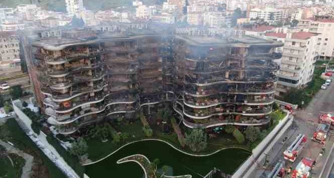 Öte yandan yangın, 7 saatin ardından ekipler tarafından güçlükle kontrol altına alındı. Dairelerdeki soğutma çalışmaları sürerken, yangının oluşturduğu hasar havadan görüntülendi.