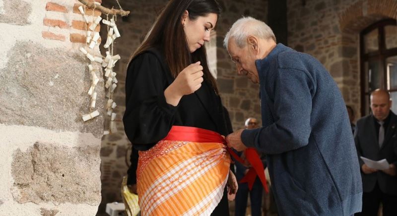 Davetlilerin izlediği törende; eğitimlerini tamamlayan, çıraklık ve kalfalık dönemlerini geçiren Meltem Üçüncü Demirel ve eşi Mustafa Sinan Demirel, Cumhurbaşkanı Recep Tayyip Erdoğan’ın ev sahipliğinde Ankara'da Cumhurbaşkanlığı Külliyesi’nde ödül alan Yaşayan İnsan Hazinesi Parşömen baş ustası İsmail Araç’ın eli ile peştemal kuşandılar ve Parşömen ustalığına yükseldiler.